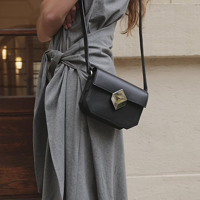 The MINI PRISM distills the graphic elegance of the original design into a compact format. True to PIERRE HARDY’s geometric aesthetic, it features the signature polished metal magnetic clasp that highlights its modern, sophisticated character. Smaller yet equally refined, it stands out for its versatility—worn crossbody or on the shoulder with its adjustable strap, it complements both everyday outfits and evening looks. A precious, contemporary piece where structured design meets delicate proportions.